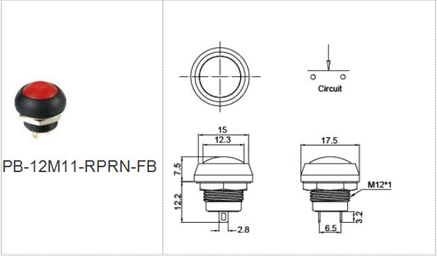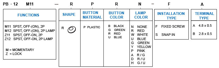 PB-12 SeriesIP67 All Plastic Round Mini Push Button Switches, Install by nut-tightening or snapin