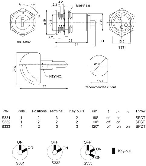 - 產品描述:S331/ S332/ S333 Ø16 MID-SIZE SWITCH LOCK, Ø16, TWO OR THREE POSITIONS