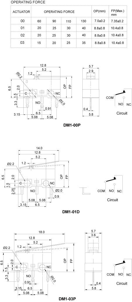 - Product description: Rating 1A or 3A Subminiature snap action switches up to 3A 125VAC SPDT
