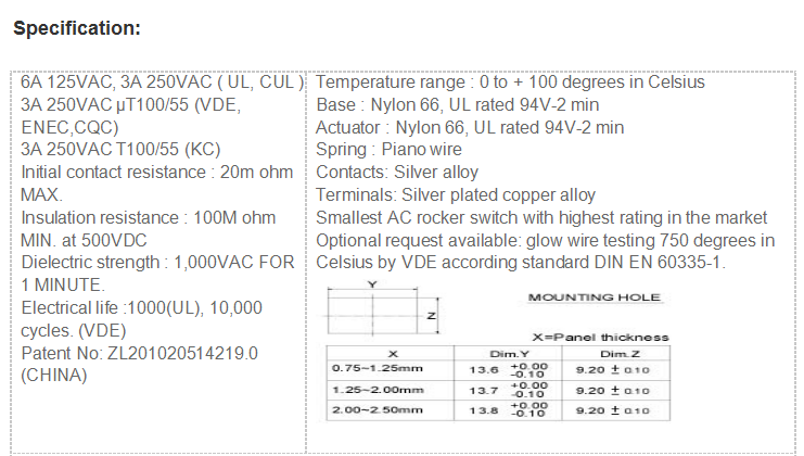 Industry's smallest AC/DC rocker switches, lighted, up to 6A 125VAC