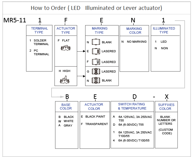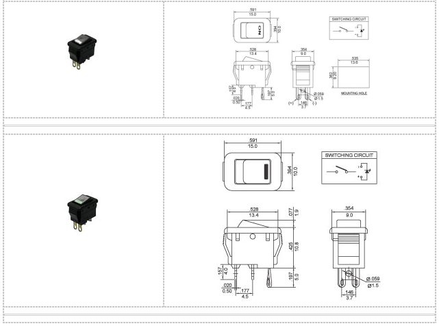 MR5-A SeriesIndustry's smallest AC/DC rocker switches, lighted, up to 6A 125VAC