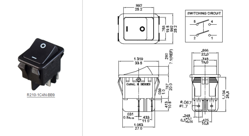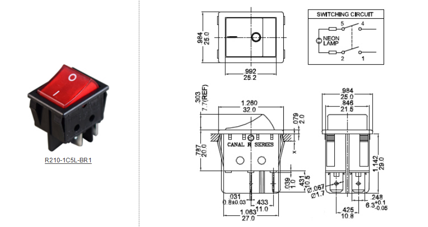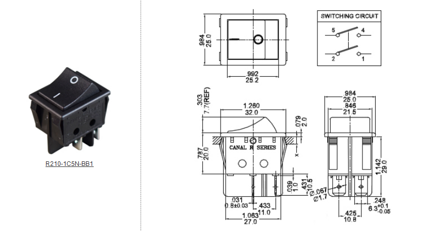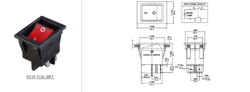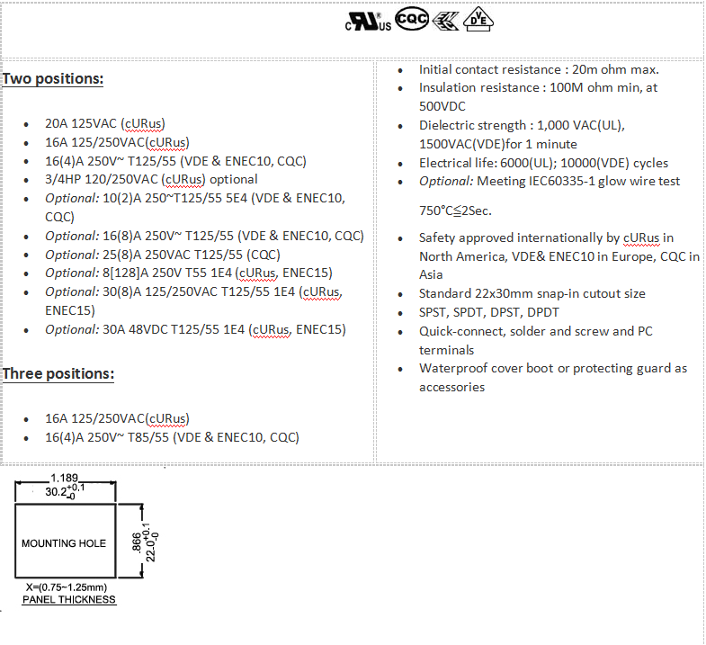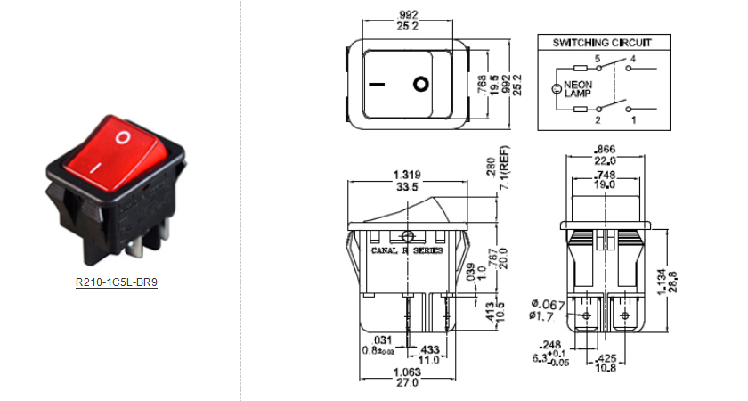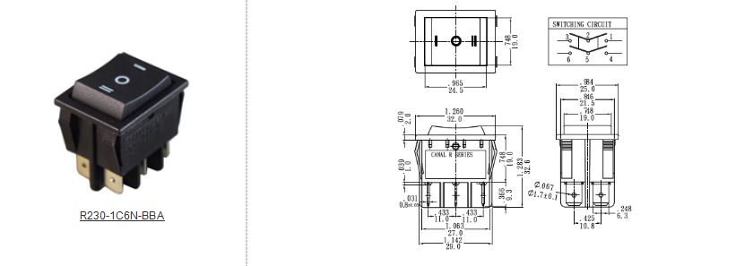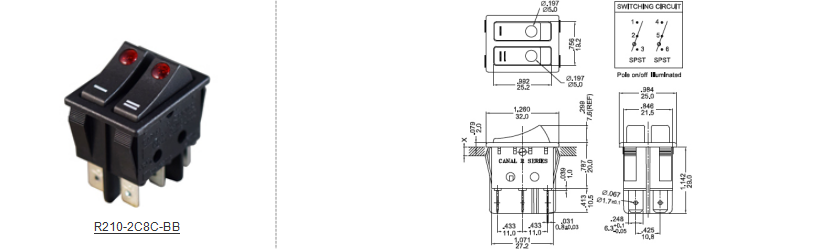 R-A series22x30 MOUNTING, DOUBLE POLE ROCKER SWITCHES UP TO 30A 125/250VAC, 128A INRUSH