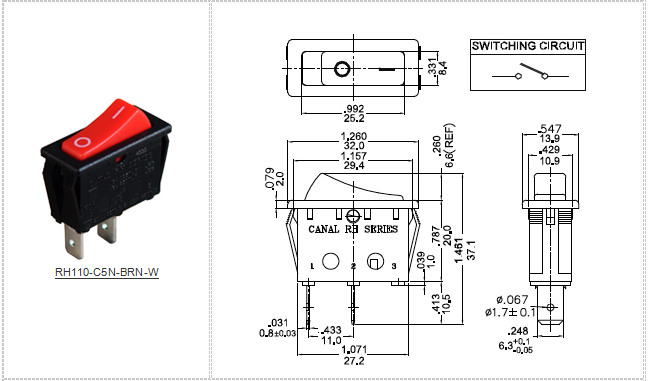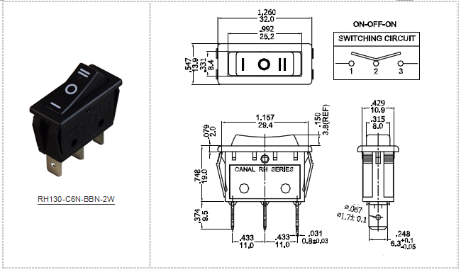 RH-A SeriesStandard 11x30mm rocker switches, up to 30A 125/250VAC, 128 inrush