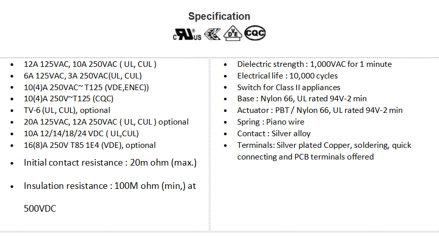 MR2-A Series20A mini-rocker, Inrush current up to TV6