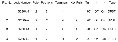 - Product description: S286 Ø19 S286A, S286B key lock switches, 4A 125Vac, DPST,150 Combinations